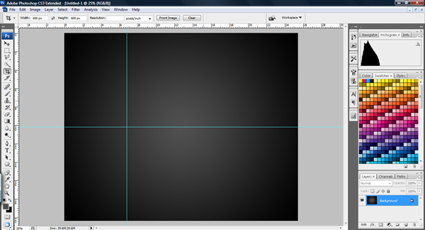 To create the background, set your foreground color to #505050 and then use the gradient tool and select the radial setting. Drag from the centre outwards to get a soft glow in the middle of the image.