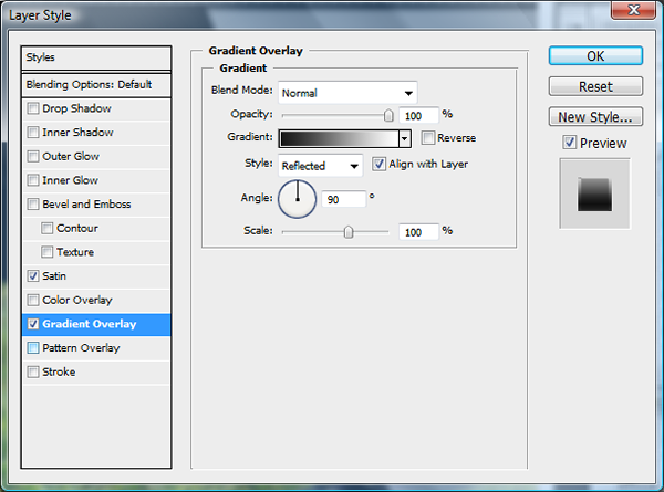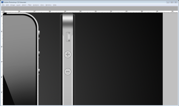 Now with the same tool (U) on a new layer called "Silver" draw a thinner but longer box than the "Side Blk." Its length should mean that it only just protrudes the edge of the other box. Then add the gradient underneath.