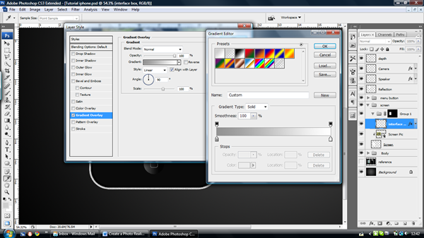 Now the iPhone body is out of the way we can get a move on with the interface before we move onto the back and side views of the iPhone. To start, Make a new layer group and call it "interface", Cmd/Ctrl – Click the "Screen" layer and then press the ‘Add Layer Mask’ button. This will make everything made in the group crop to the Screen.