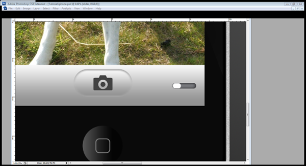 Now we will create the camera icon for the button, create a new layer and call it "Camera icon." Using the Rounded rectangle tool (U) with a radius of 20 pixels, draw a large-scale camera and use the direct path selection tool to move the top corners of the top box towards each other. Press Cmd/Ctrl + T to transform the icon; resize it to make it fit inside the camera button. Select the Rounded rectangle tool (U) and Right-click the path, click fill path and fill it with #424242.