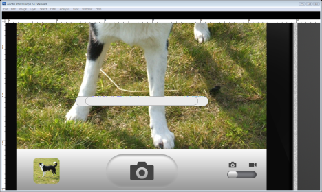 Drag two guidelines to the centre of the box and then create a new layer called "Camera button." Use the ‘Rounded rectangle tool’ (U) with a radius of 1cm to create the button. Press Cmd/Ctrl + Enter to turn the path into a selection, and then fill the selection. Go to Layer > Layer Style > Paste layer style. (This will paste the same layer effects setting from the copied layer onto this one).