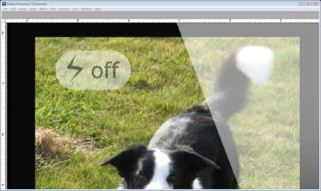 Now we move onto the flash display. Use the rounded rectangle tool (U) at radius 1cm to draw rectangle in the top left-hand corner, fill it with white and bring the opacity to 50%. Use the Veranda font in black and size 12 to write the word ‘Off’ and then bring the opacity to 50% again. Using the Pen tool (P) draw a lightning icon and fill it with #000000. Bring the opacity to 50%.