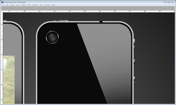 Now we will make the reflection I mentioned earlier. So create a new layer called "Reflection" underneath the "Speaker" layer. ‘Cmd/Ctrl – Click’ the "Main Body" layer and then select the Polygonal Lasso tool (L), select the intersect mode and then make a triangle across the right side of the iPhone as shown. Fill it with white. Then bring the layer opacity to 55%.