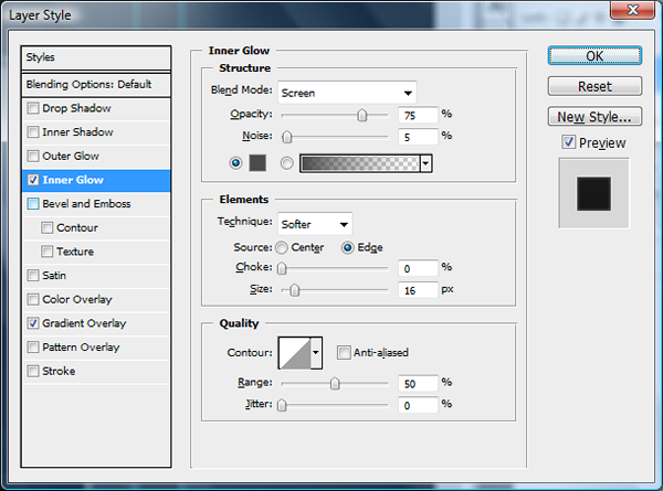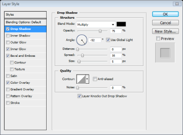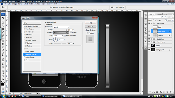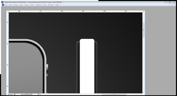 Now that the Back is finished then we can finally finish off with the side. Create a new layer group called "side iPhone" and in that group create a layer called "side blk." I’ve dragged some guidelines to outline the basis of my side iPhone. Draw a box with the rounded rectangle tool (U) with a radius of 10 pixels. Fill it and then open the layer styles and apply these settings.